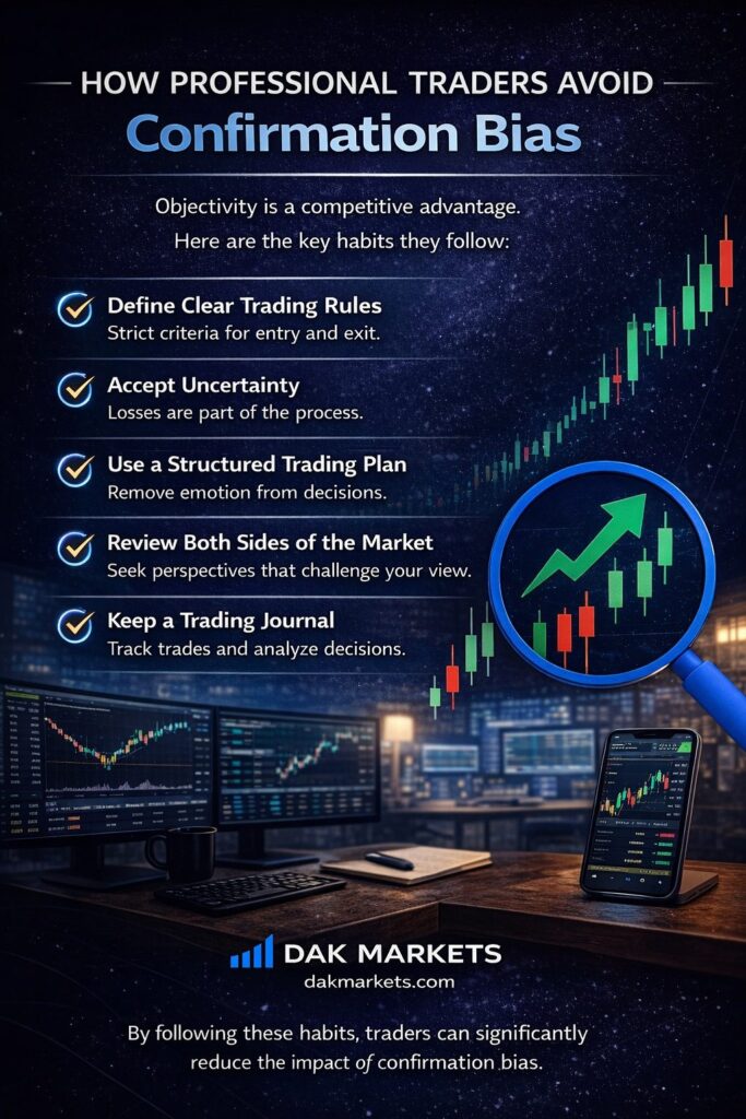 Before entering a trade, professional traders actively look for reasons why the trade might fail. This balanced perspective reduces bias.