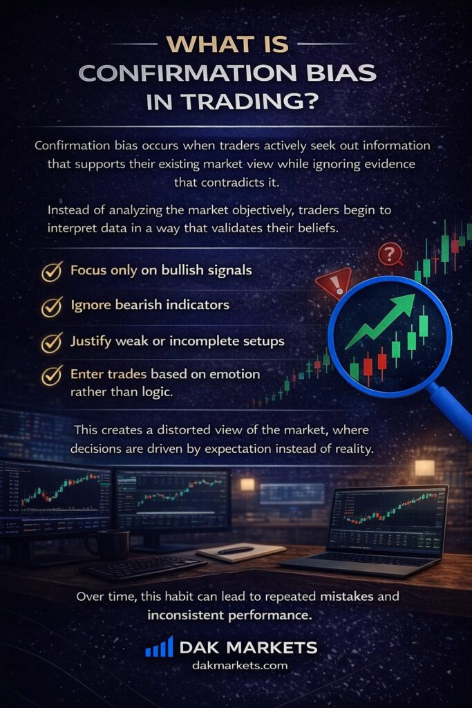 Many traders fail not because they lack skill, but because they unknowingly fall into cognitive traps that distort their decision-making. Among these, confirmation bias is one of the most dangerous.