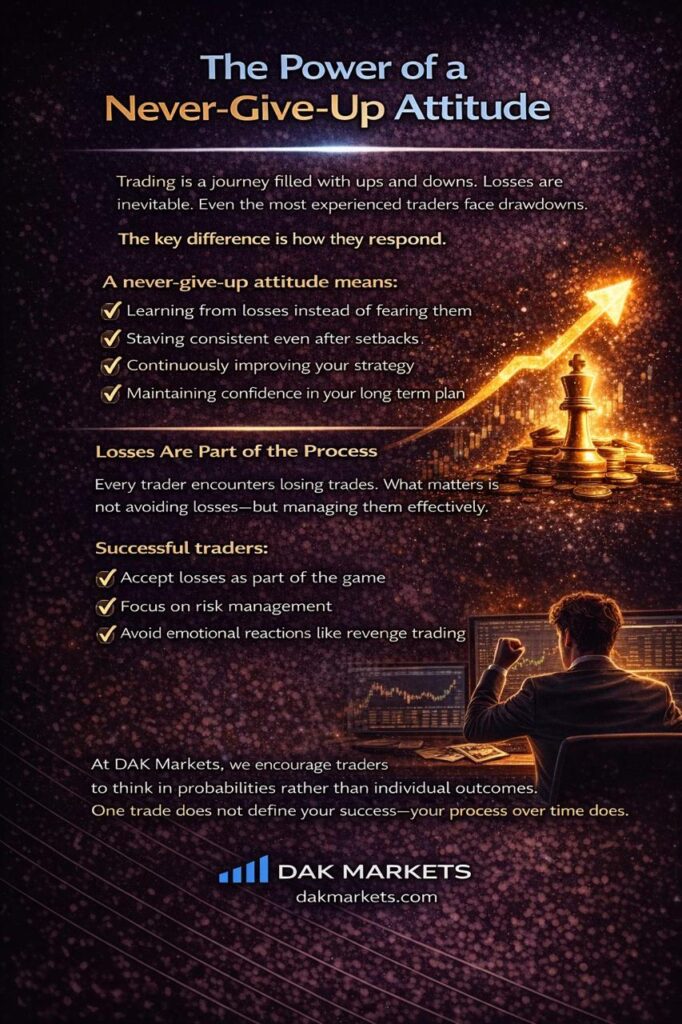 At DAK Markets, we consistently emphasize that long-term profitability is not built on quick wins or lucky trades. It is built on discipline, consistency, and the ability to stay committed—even when the market challenges you.