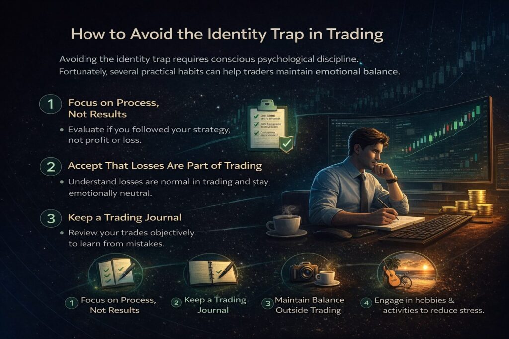 Avoiding the identity trap requires conscious psychological discipline. Fortunately, several practical habits can help traders maintain emotional balance.
