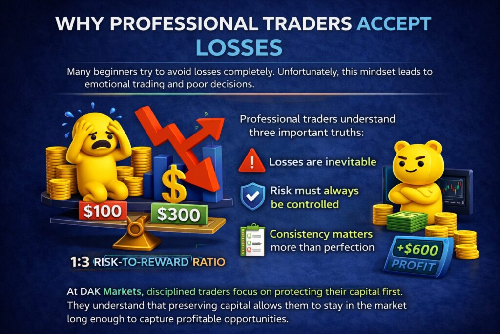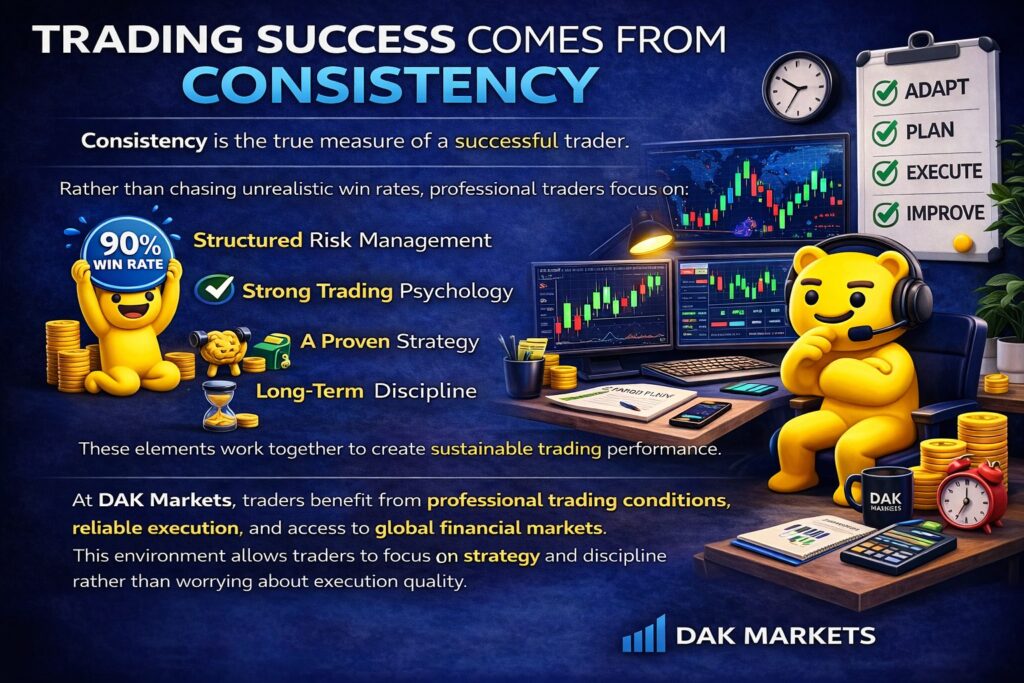 At DAK Markets, disciplined traders focus on protecting their capital first. They understand that preserving capital allows them to stay in the market long enough to capture profitable opportunities.