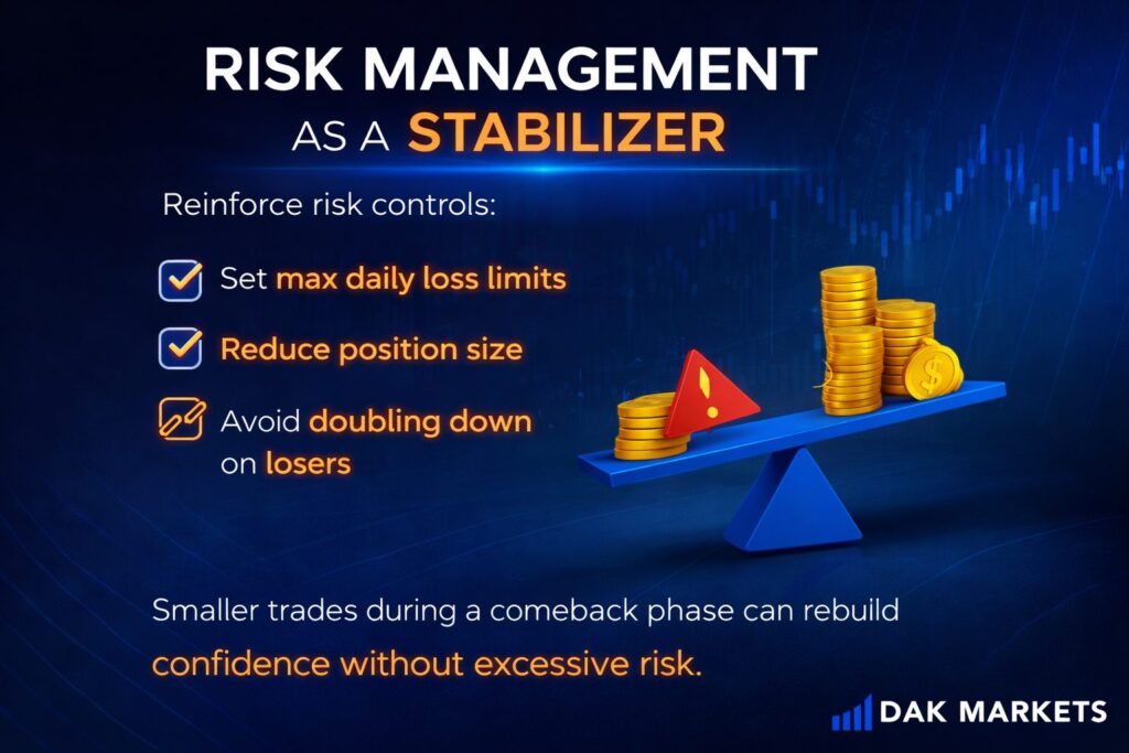 Smaller trades during a comeback phase can rebuild confidence without excessive risk.