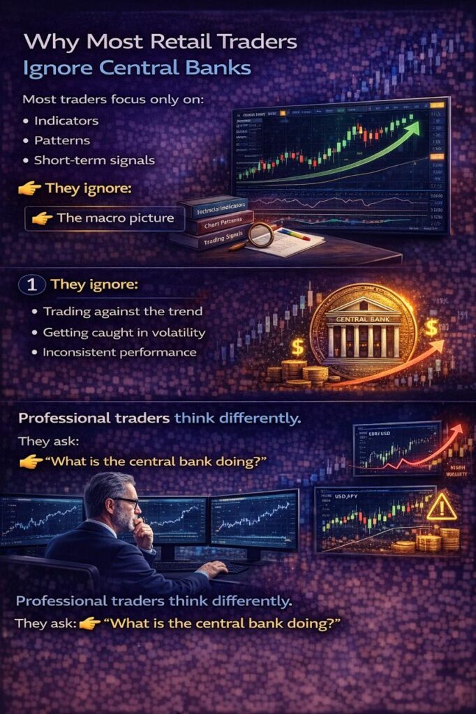 While retail traders focus on charts and indicators, institutional traders closely follow central bank decisions.