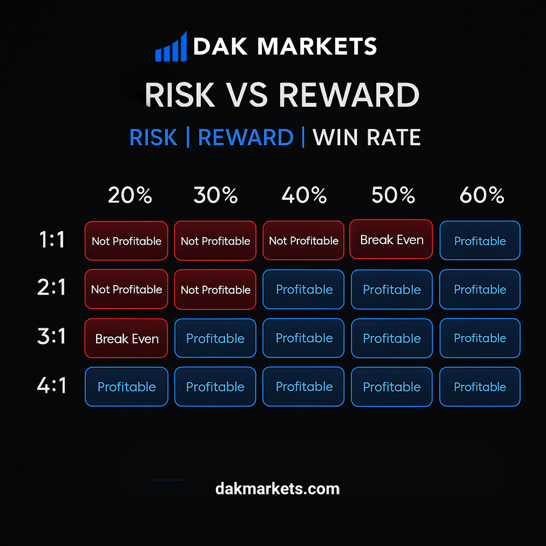 At DAK Markets, we provide next-gen trading technology and insights to help you apply these principles in real time. Whether you’re new to trading or scaling your strategy, mastering risk vs reward can be the difference between long-term success and short-lived results.