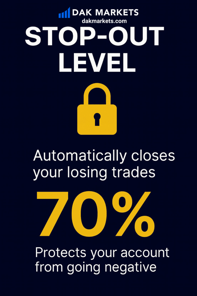A higher margin level indicates a healthier account. Most brokers, including DAK Markets, use margin levels to trigger margin calls and stop-out procedures.