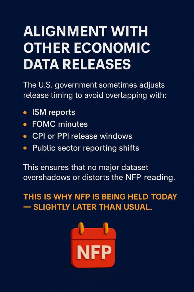 But this month, traders across the world noticed something unusual: the NFP release was delayed and pushed to a non-standard day — today.