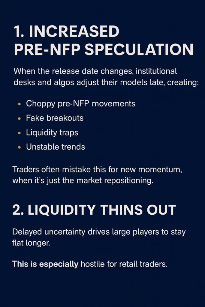 A delayed NFP doesn’t just shift the date — it changes the entire week’s flow of volatility.