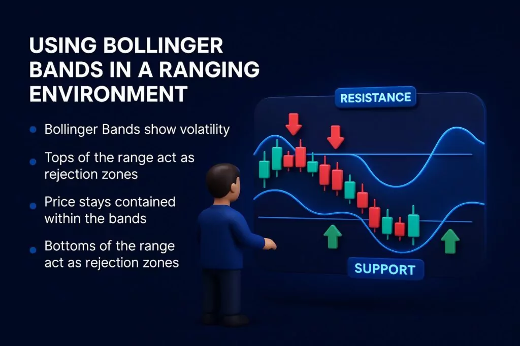 When the market ranges, traders do not aim for directional continuation. Instead, they use mean-reversion strategies, which assume price will return to an average level after deviating.