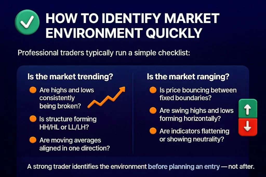 A strong trader identifies the environment before planning an entry — not after.