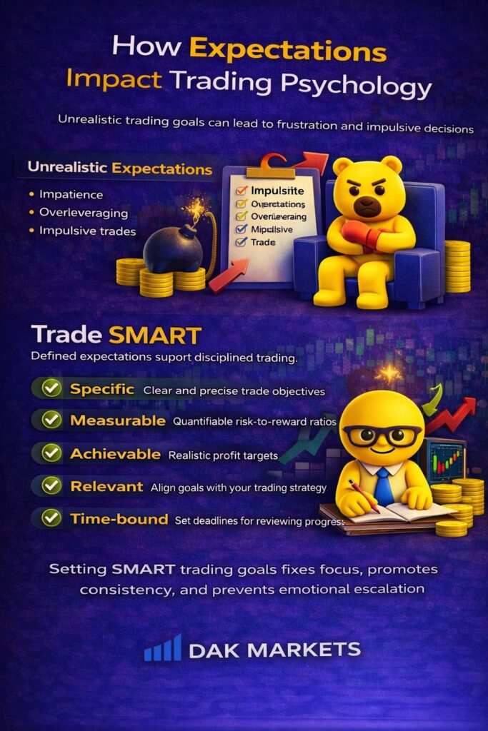 In this article, we’ll explore how expectations shape trading decisions, why unrealistic goals harm performance, and how to set SMART trading goals that support discipline and consistency.