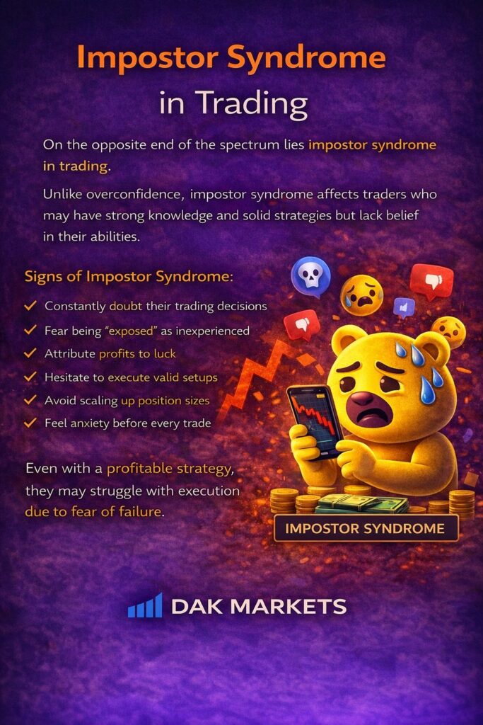 Unlike overconfidence, impostor syndrome affects traders who may have strong knowledge and solid strategies but lack belief in their abilities.