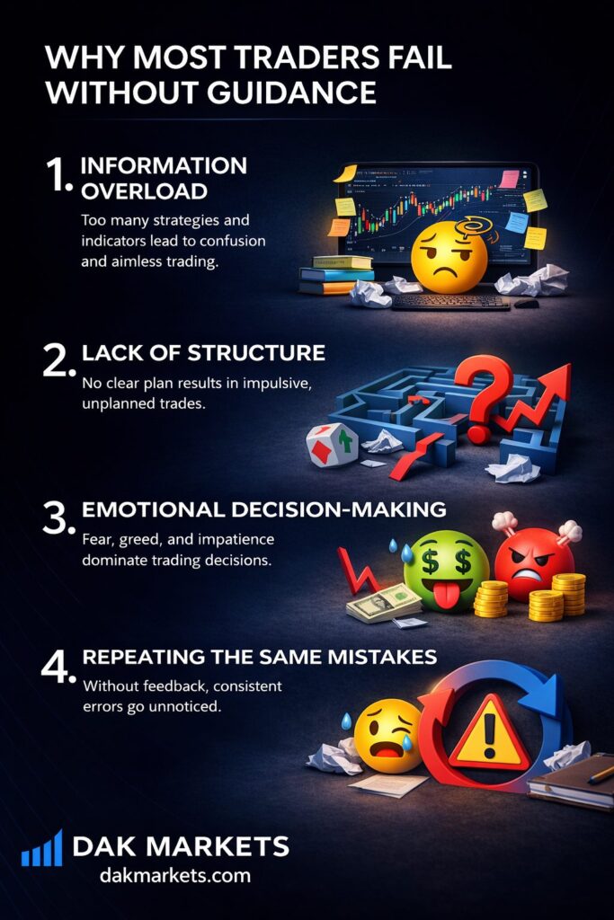 There are thousands of strategies, indicators, and opinions online. Without direction, traders jump from one idea to another, never mastering any of them.