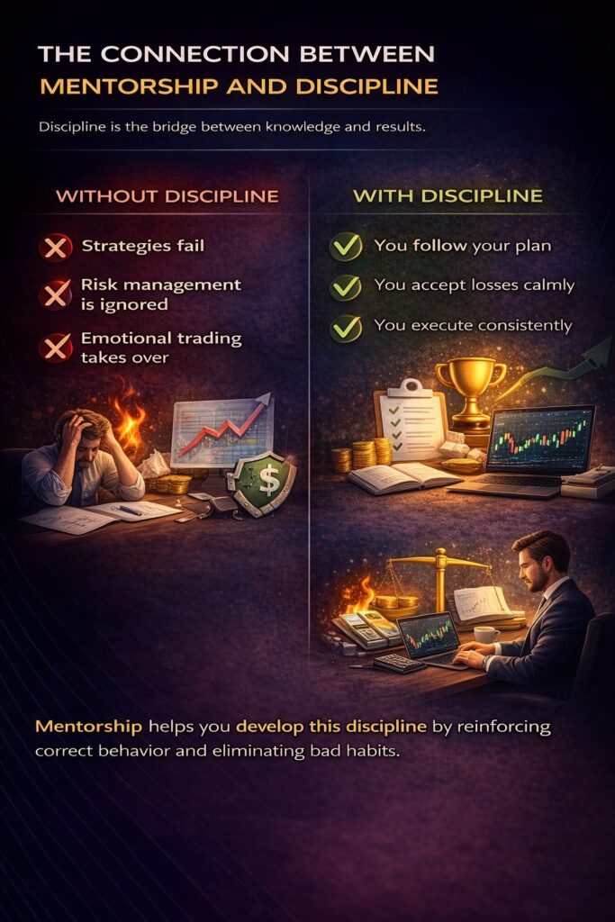 Discipline is not something you are born with—it is developed over time. A mentor reinforces the importance of following rules and managing risk.