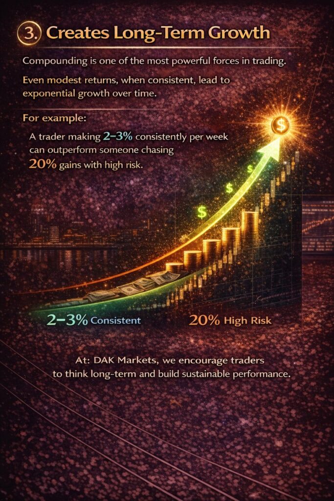- A trader making 2–3% consistently per week can outperform someone chasing 20% gains with high risk.