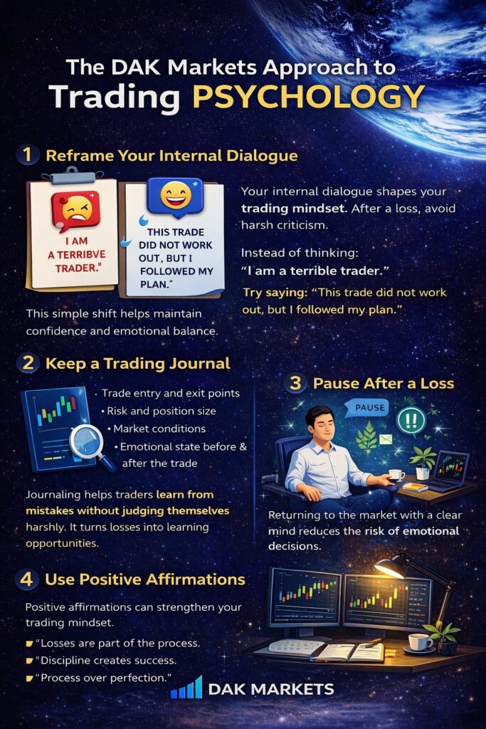 Many traders fall into the trap of negative self-talk. After a losing trade, emotions can quickly spiral into frustration or doubt.