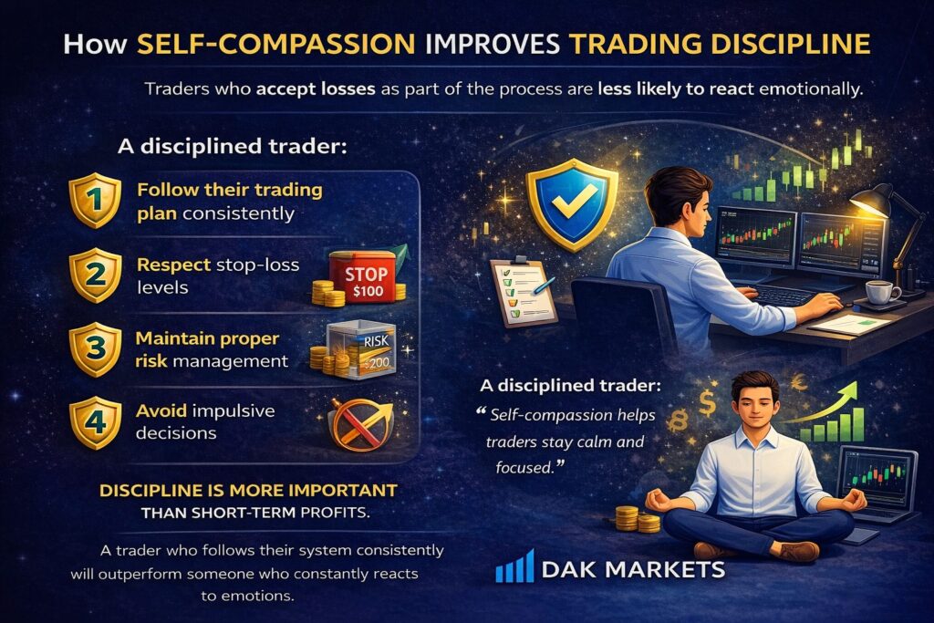 Self-compassion directly strengthens trading discipline. Traders who accept losses as part of the process are less likely to react emotionally.