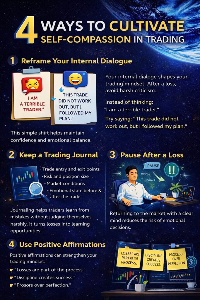 Traders who practice self-compassion recover faster, stay disciplined, and continue improving their skills.
