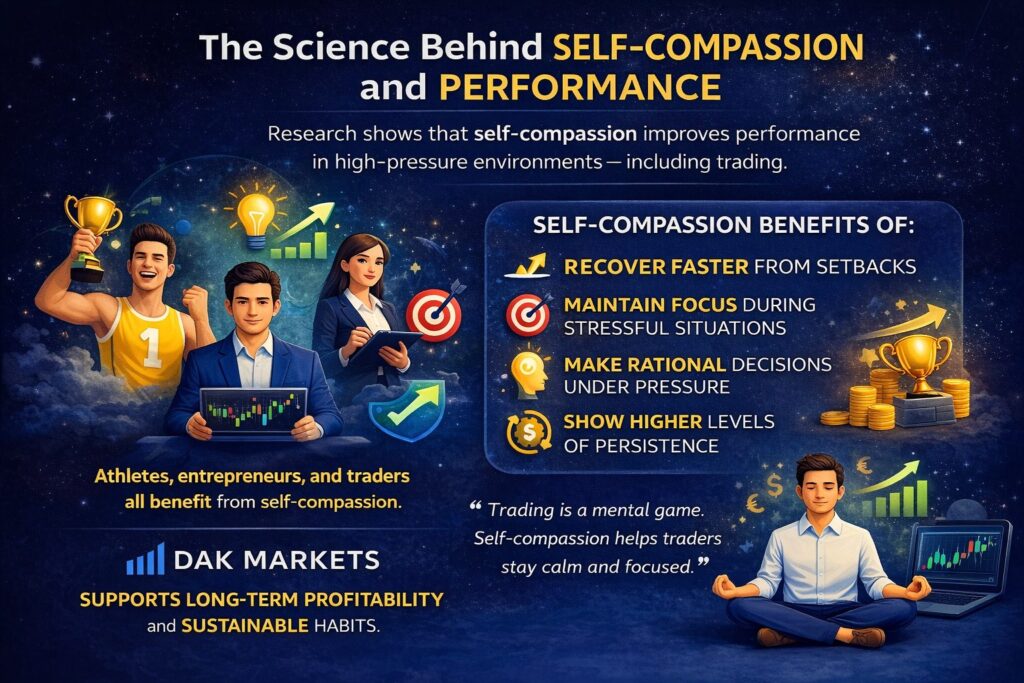 Psychological studies show that self-compassion improves performance in many high-pressure environments. Athletes, entrepreneurs, and professional traders all benefit from this mindset.